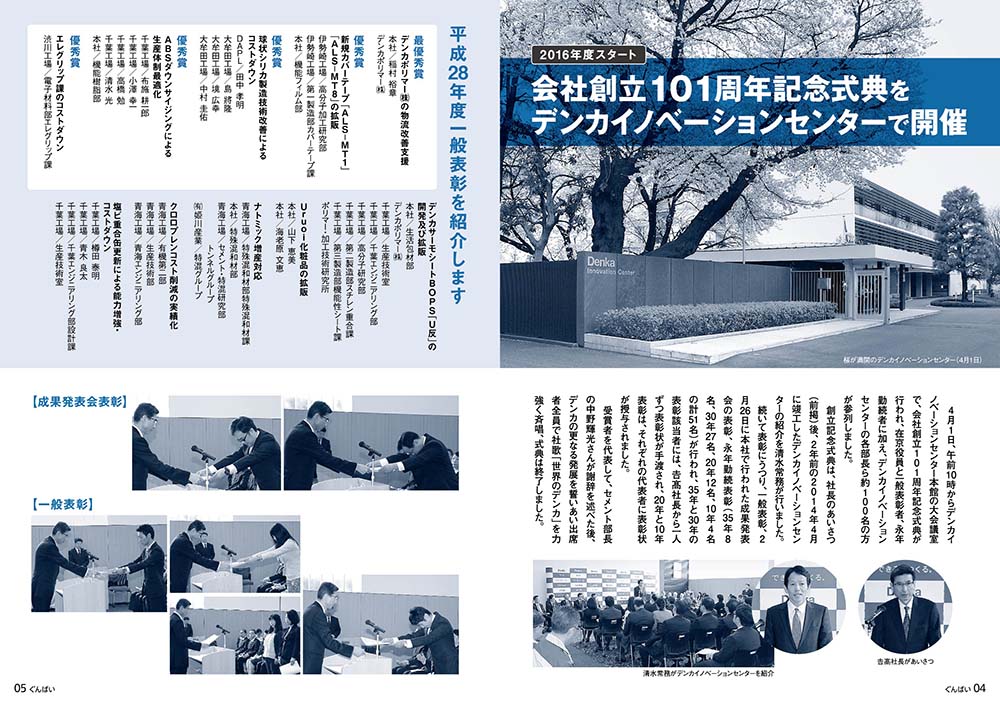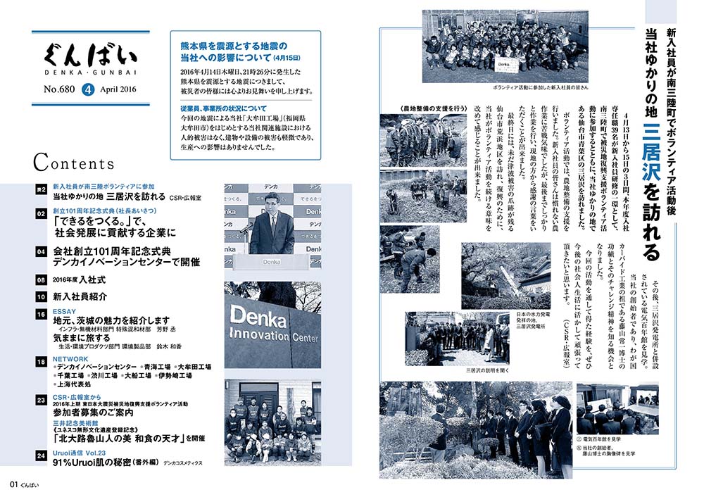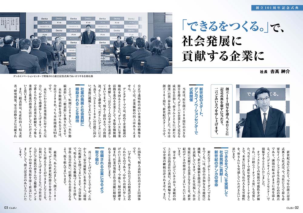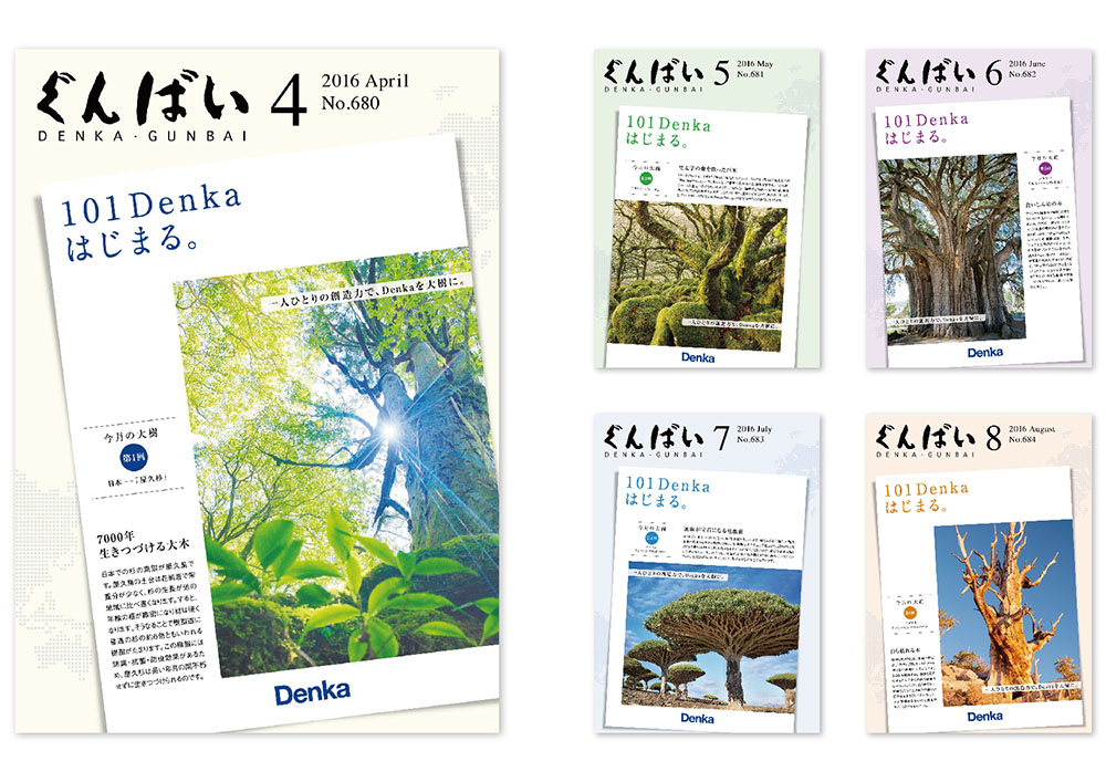 総合化学メーカーの社内報です。環境保護にも積極的に取り組んでいる企業なので、エコロジカルな視点を意識して製作しました。社内だけではなく退職されたOB・OGにも配布するため、文字の読みやすさにも注力しました。